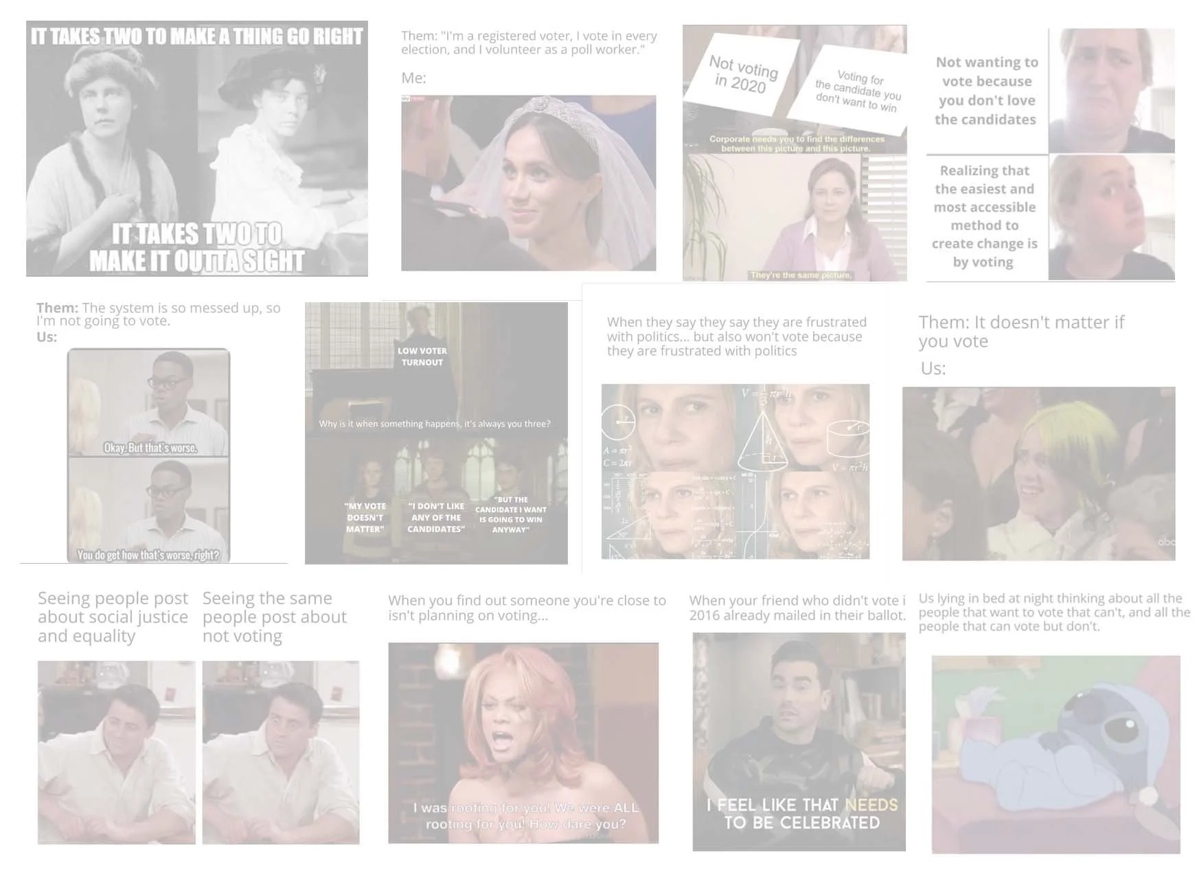 In my role as Marketing & Civic Engagement Director I led our social media strategy. I was increasingly concerned about low voter turnout from young voters, specifically the primaries leading the to the November 2020 national election. We had an amazing group of college interns in the fall of 2020 that were fired up to help promote voting amongst their peers. I worked with them to develop the #VOTER meme campaign specifically for the organization’s Instagram platform.
